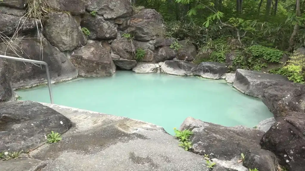 乳白色のように見えるが実際はもっと薄く透明な湯に沢山の湯ノ花のせいで白濁してみえるという湯。匂いは硫黄のいい香り。飲むと味は薄め、何味だったかは覚えていない。景色は見てのとおりまるで林の中にいるような景色だった。