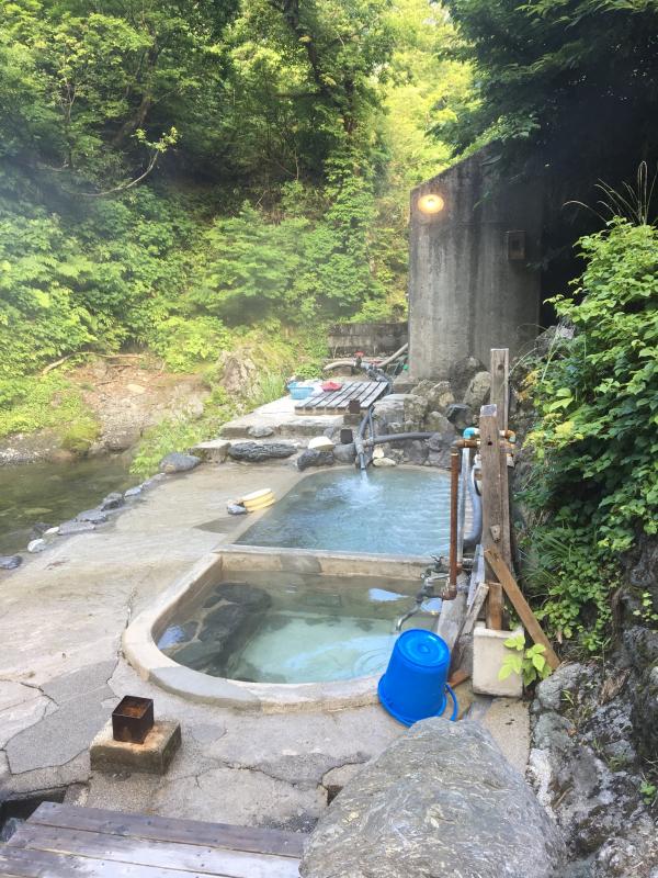 こんこんと湧き注がれるぬる湯の温泉は、もうこれでもか!という具合に新鮮な湯を絶えず堪能させてくれ、その低温故(34度?)何時間でも浸かっていられる。肌につく細かな泡(宿のご主人もこの泡が何なのか不明だそう)が全身にまとわりつき、湯を出た時には肌が喜んでしっとりしている(化粧水代わりとしても使えるのだそう)。混浴入浴時には女性には厚い湯あみ用のタオルが用意され、それがまた真っ赤で可愛らしい。貸し切り温泉も2つ程あり、もう何も言うことはない。