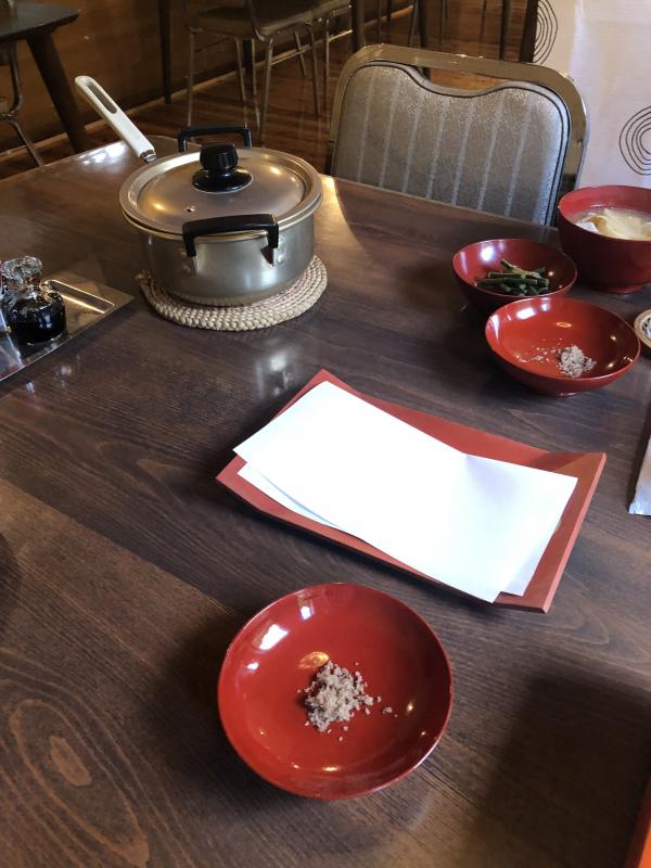 山の宿という事と暗めのランプのみで過ごすことより、17時半と普通の宿より食事時間が早い。