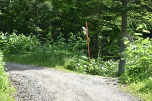 しばらくダートを走っているとカーブミラーが見えてくるのでその道を右へ入ります。