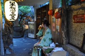 写真には載っていないが到着した時間帯はトロッコ電車の運行時間内という事もあり、日帰り客が宿の入り口が見えないほどいた。
