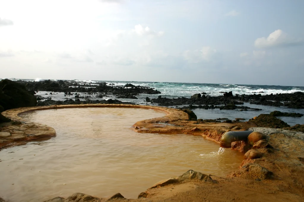 2月に訪れたせいか温度はそこまで高くなく、39度くらいでした。なので海風にあたりながら、長湯できてしまいます。