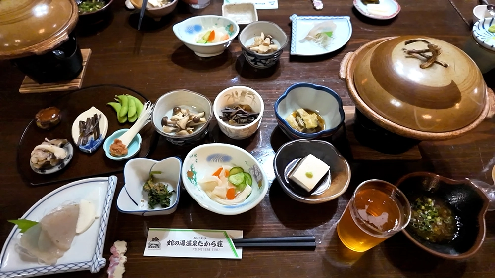 夕食は山の幸パラダイス。全てに手抜きがなくその日に宿泊する人だけのために十割蕎麦を手打ちで作るこだわりよう。いやー感動した。
