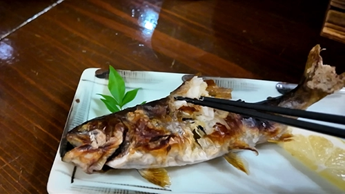 ニジマスの塩焼きは生簀からとってきた新鮮そのもの。