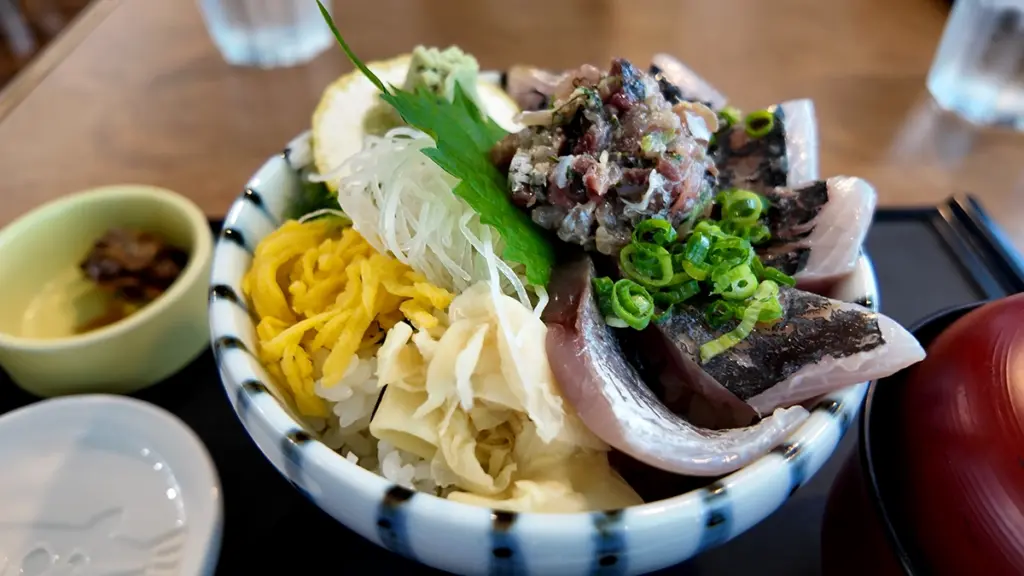 黄金アジを食べてみたくて、何件か食事処をまわったが全て混んでいて1時間待ちが当たり前。