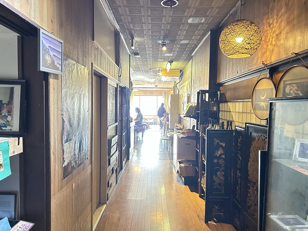 金谷港のお土産屋さんに併設されていて、海に面しているので窓からの景色は一面海。