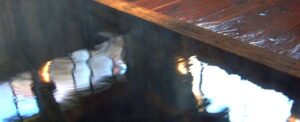 滝のように落ちる打たせ湯のうち一番手前は、井戸水がまざっており、打たせ湯もできる。