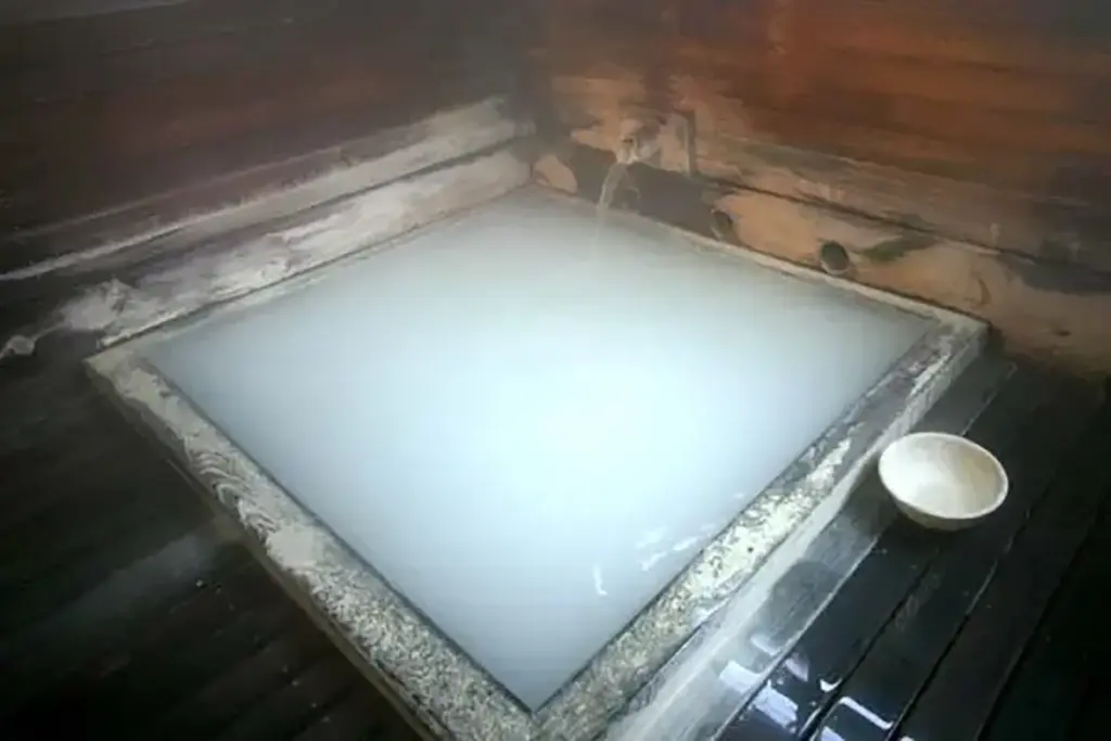 美しい白濁した温泉 1日に数回色が変わる神秘の湯