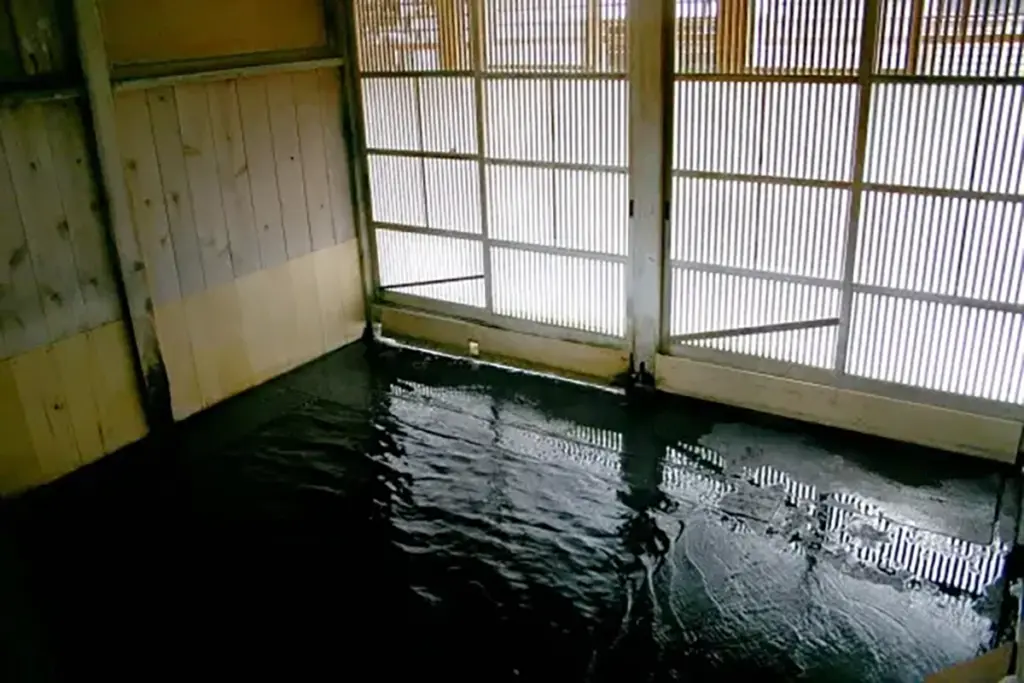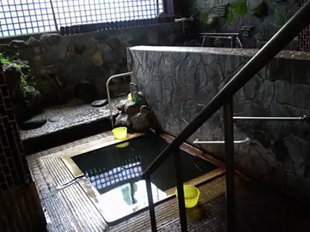 掛け湯用の小さな四角い浴槽があり、掛け湯をしようと桶でかき回してみたところ、黒い湯の花がブワーっと舞い上がった。