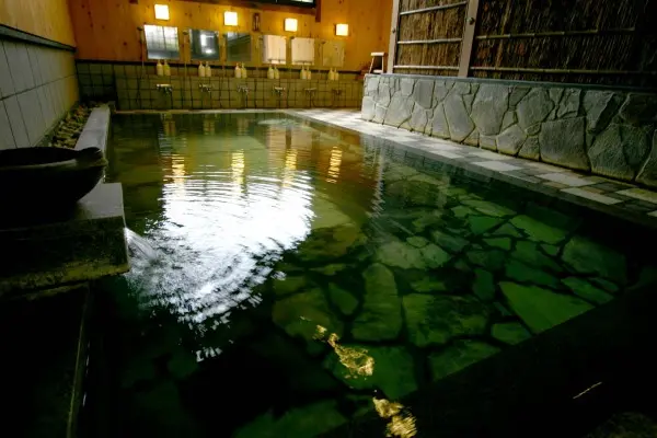 黒湯とも男女別の湯とも違う泉質で緑がかった黒色に見える。