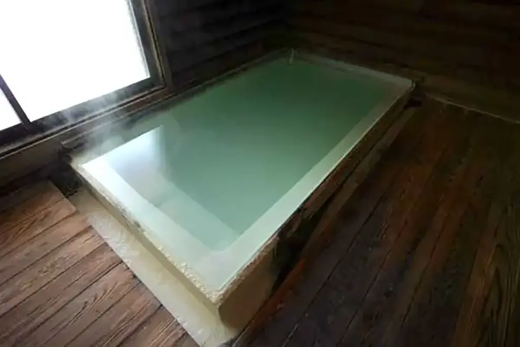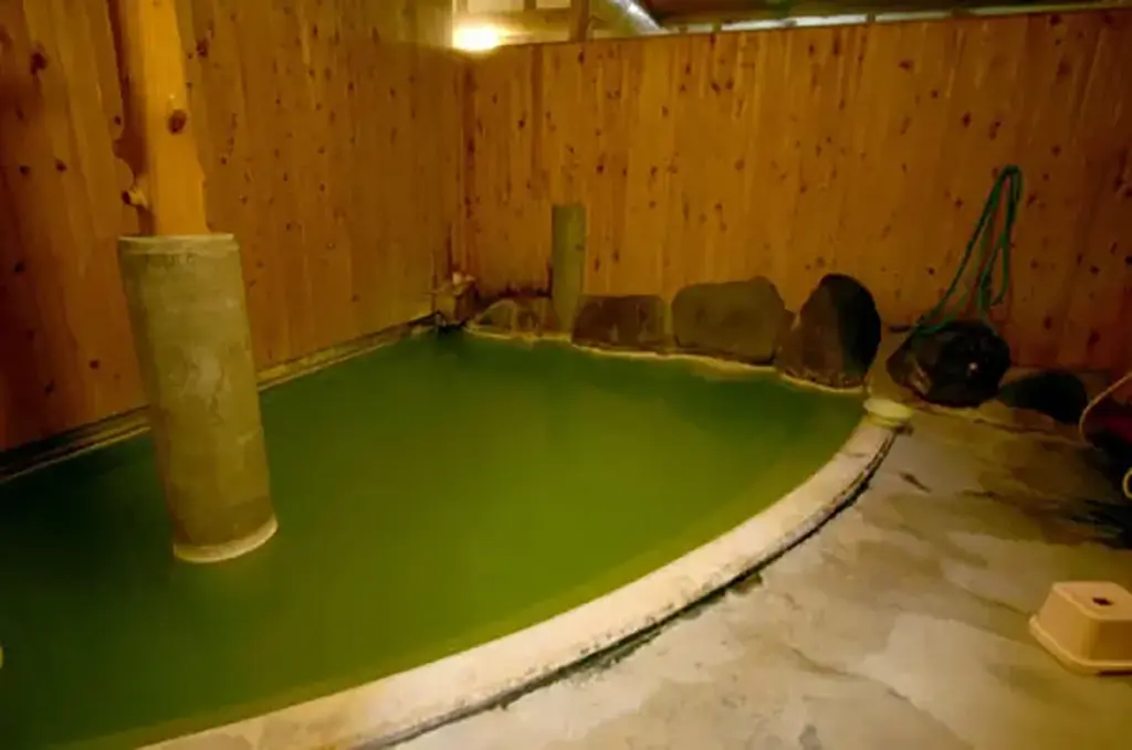 国見温泉といったら温泉の色。ライムのような緑色のお湯は濃厚で口へ含むと吐き気がするほど苦い。