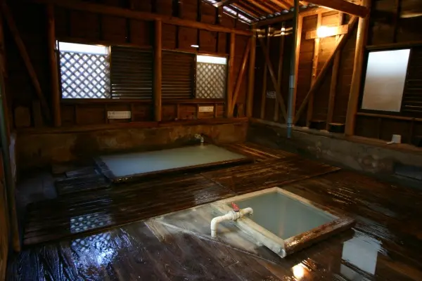 こちらの湯はアトピーや皮膚病に良く効く事で有名で、湯を持ち帰る人も多い。