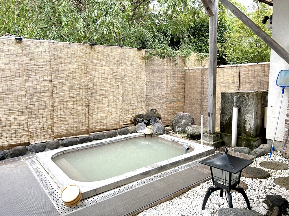 まろやかな大涌谷の濁り湯を貸切でゆっくり味わえる露天風呂