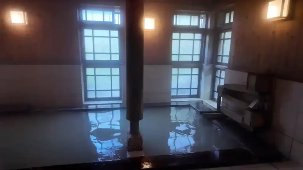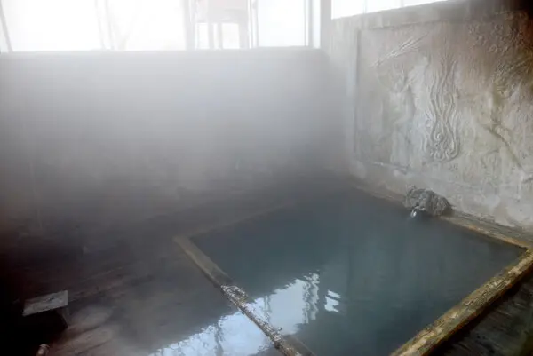 広間を通って奥へ行くとひなびた通路があり、その奥へ男女別の浴室がある。浴室は喚起が悪く、湯気で浴室全体が白い。