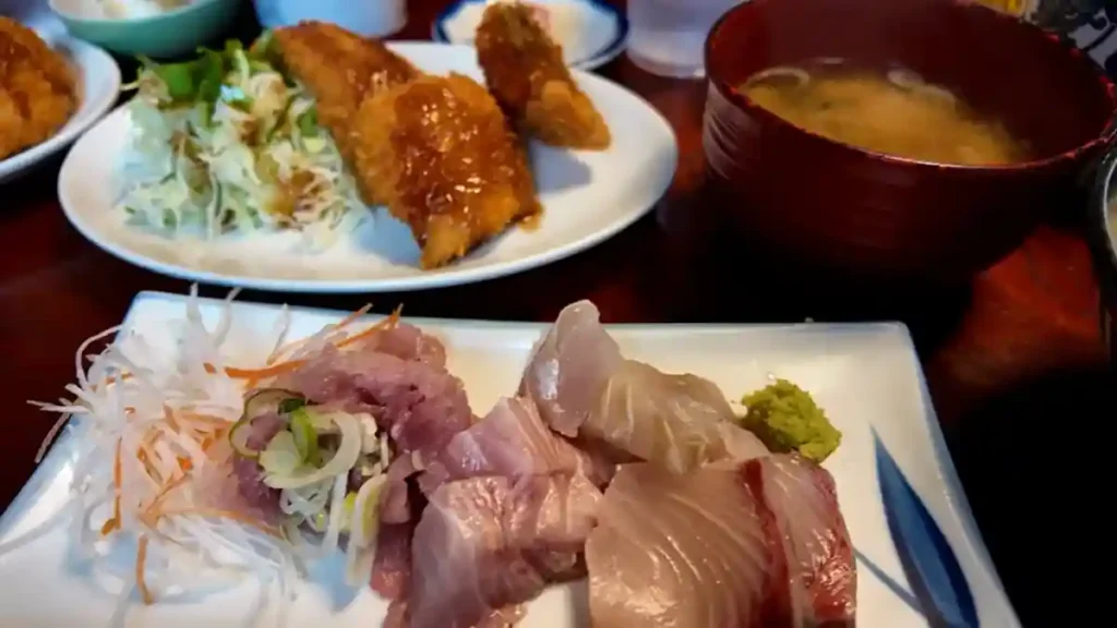 アジフライは分厚くてフワフワ!お刺身は鮮度抜群で最高に美味しかった。