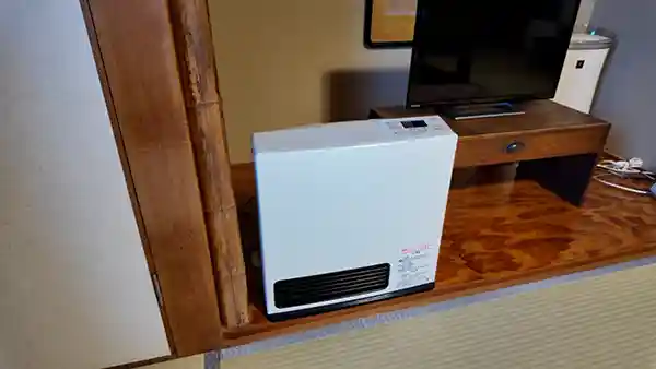 この日は寒かったが、暖房はエアコン+ガス暖房があり暖かい。