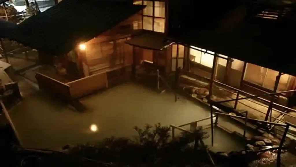 宿の入り口からは下駄をはいて階段を下りるとそこには真っ暗な中ボヤッと浮き出ている灰白色の湯がある。誰もいない静寂な空間は本当に最高なものだった。