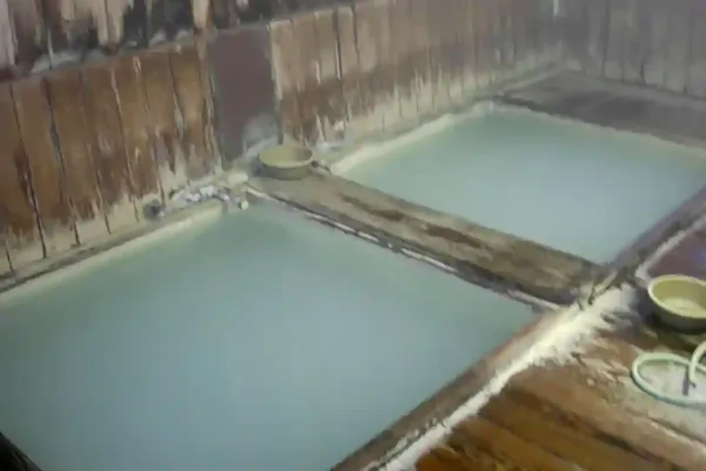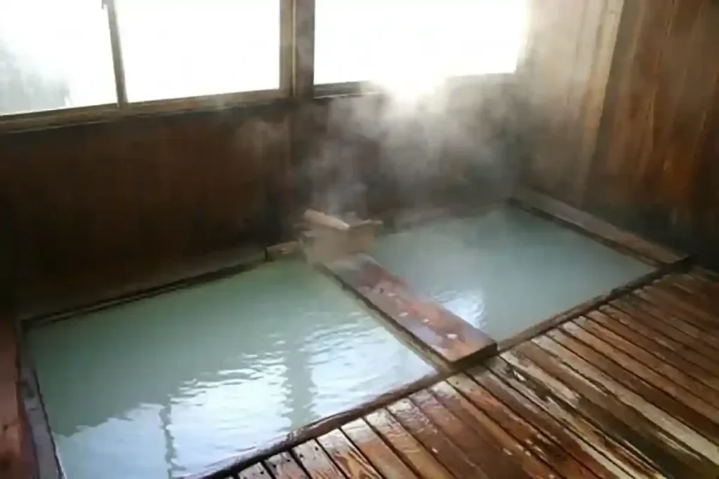 こちらの湯はアトピーや皮膚病に良く効く事で有名で、湯を持ち帰る人も多い。