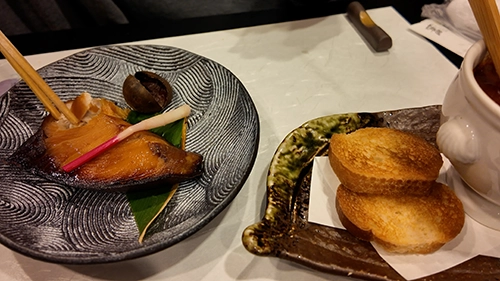 お刺身はぷりぷりで、特にタイの醤油漬けは美味しかった。