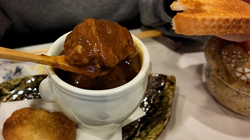 ビーフシチューが出てくるのは秘湯の宿ではかなり稀だと思うが、肉がホロホロで口の中で溶けてしまうほど。