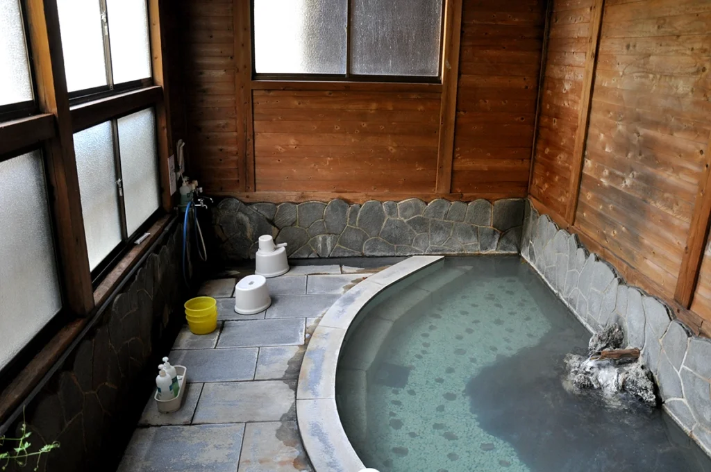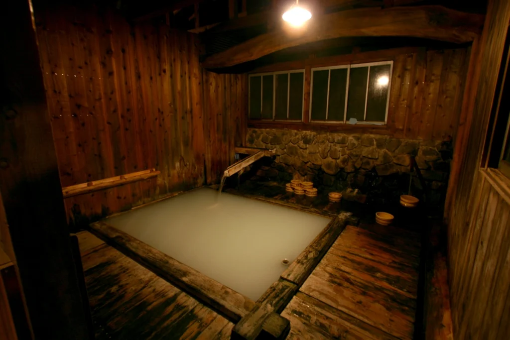 やわらかな浴感の乳白色。ほんのりと青みや灰色を帯びることもあり刺激は強くないのに、じんわりと身体の芯に染み込んでくる。