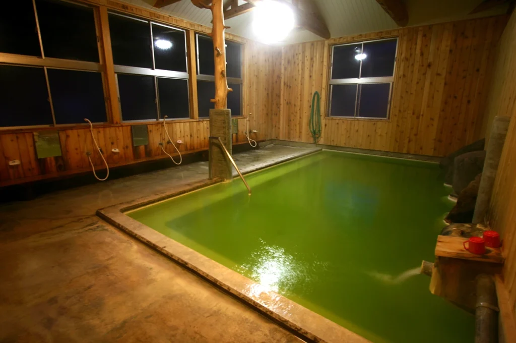 国見温泉といったら温泉の色。ライムのような緑色のお湯は濃厚で口へ含むと吐き気がするほど苦い。
