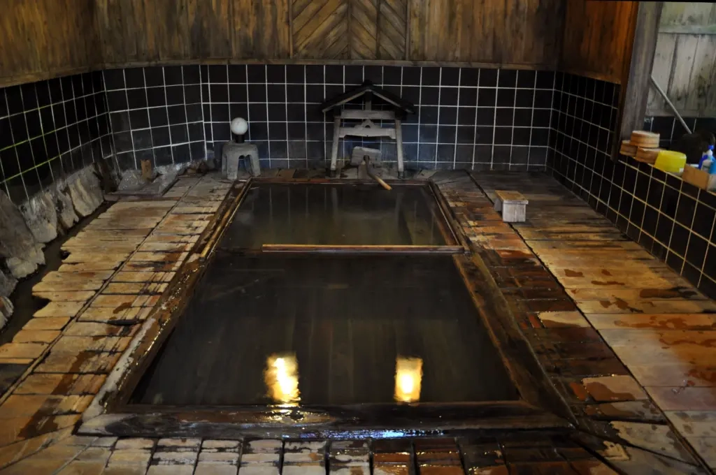 白湯と黒湯のいずれも全て木造の風情満点な作り。露天風呂へ行く人が多いのか来る人は少なく穴場的な浴場だ。鶴の湯の温泉へはアメニティは一切置いていない。シャンプーやリンス、石鹸もない。そんなものを求めるところではないという事だろう。