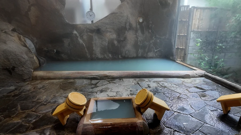 この日は青みがかった白濁した湯が浴槽に溜まっていてとても綺麗だった。