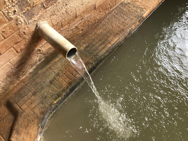 奥が鉄分を感じるお湯。快晴の昼下がり、