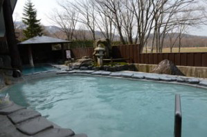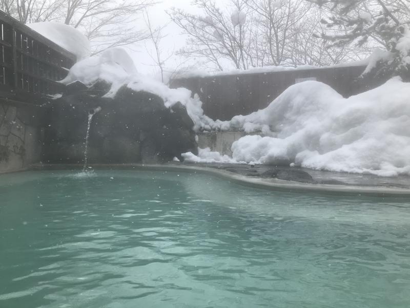 白濁した硫黄泉であるのだが、湯の色がとても美しい温泉でもあり、湯船に寄って、ミルキーブルーや半透明の薄い蒼、蛍光ライトブルーから発光していない水色など、色の差があり、いずれも綺麗で浸かっていても飽きない。景色は無いのだが、それでも冬の雪見露天風呂は、白の中に青い湯が輝き最高である。