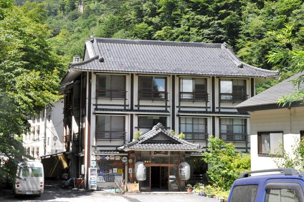 八丁湯から10~15分歩くと加仁湯へ到着します。宿の全体はこういった近代的な建物です。